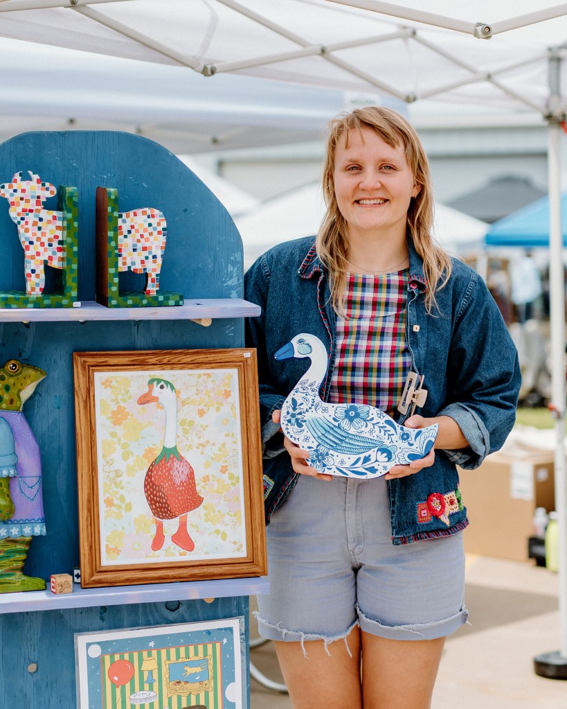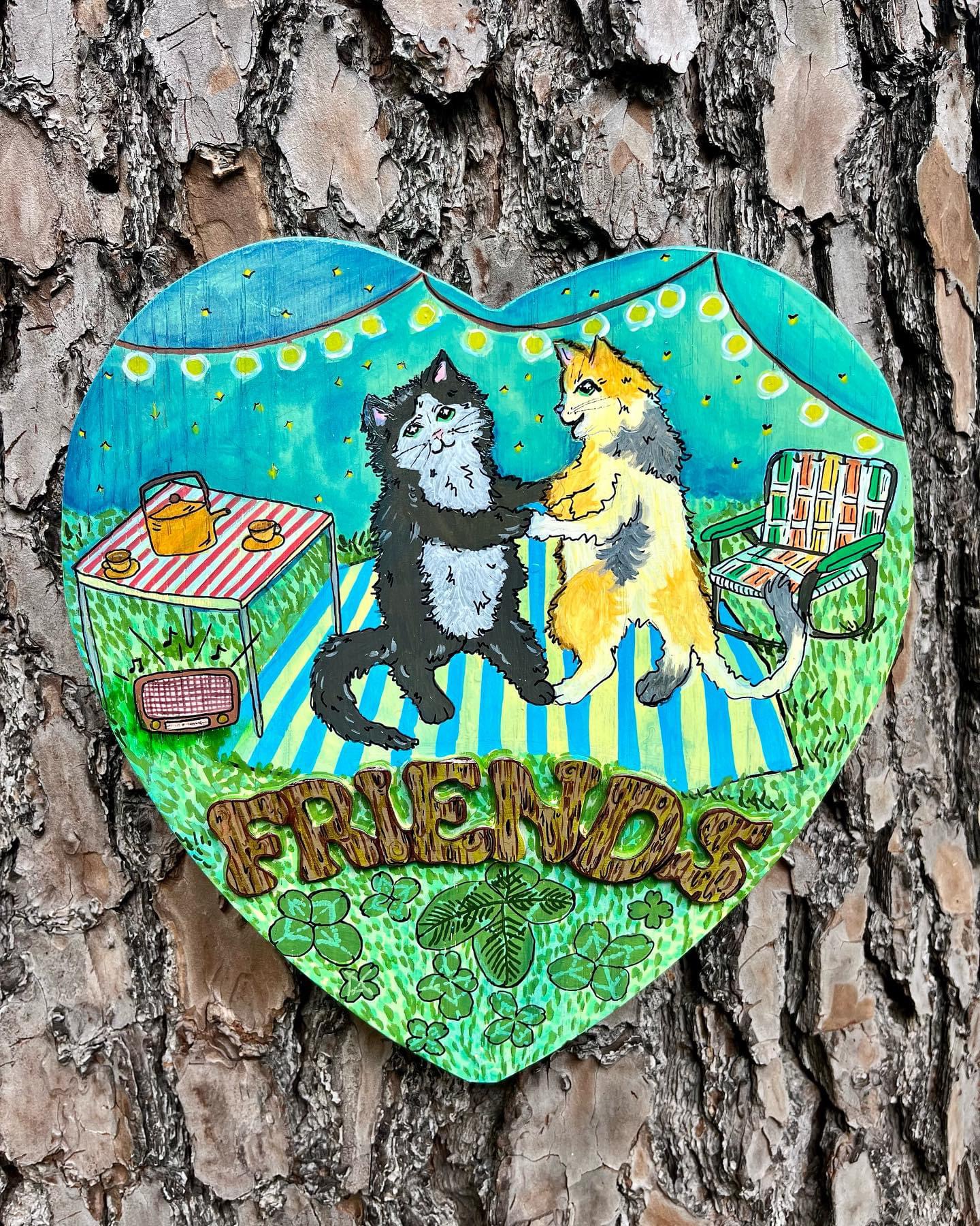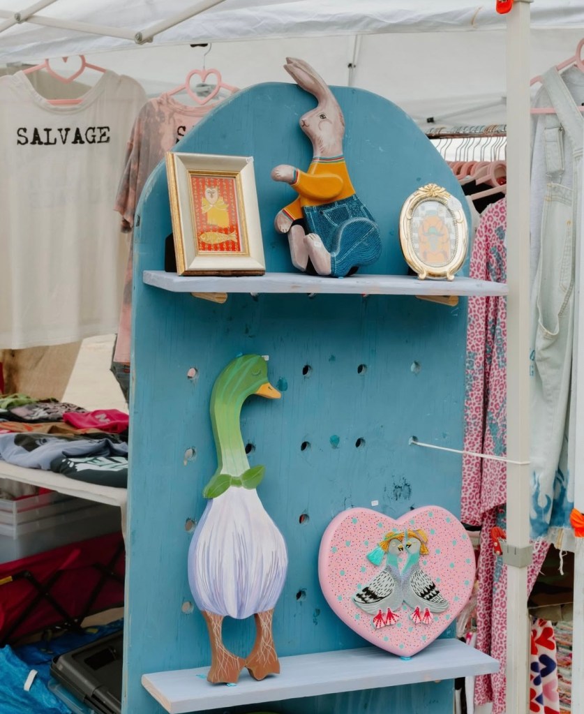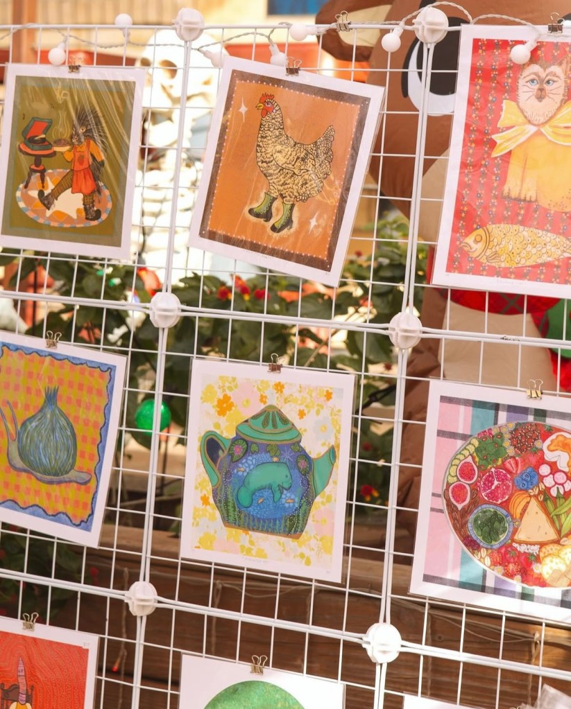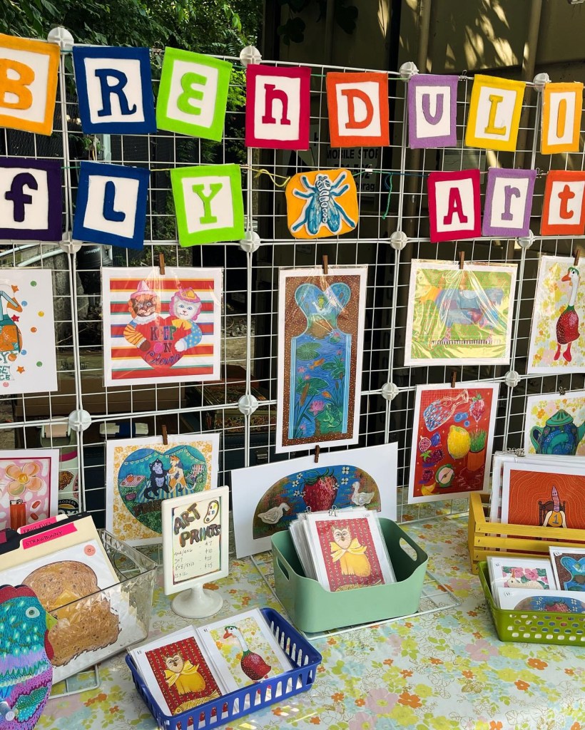 I paint all my originals on wood I score from flea markets and thrift shops around Arkansas and nearby states. I’m all about finding animal and food shapes to transform into my fun and colorful critters! If you’re into my wooden originals, hit me up via email or slide into my DMs on Instagram you can see what’s available for purchase there or commission a custom piece! 🔗https://www.instagram.com/brendullflyart/?hl=en