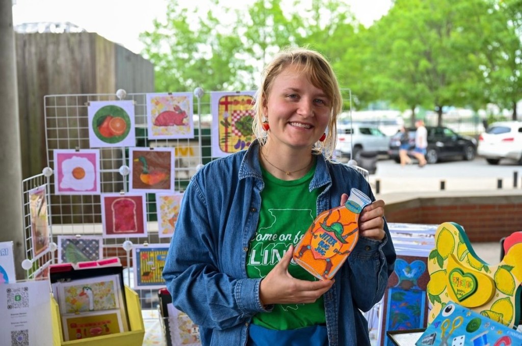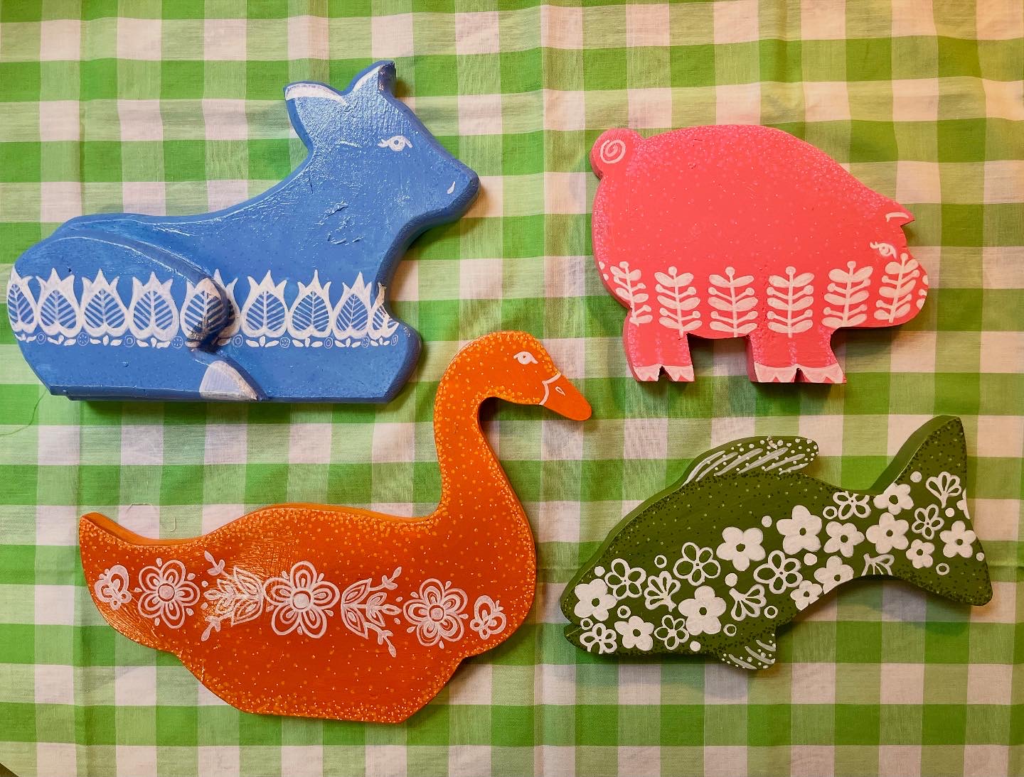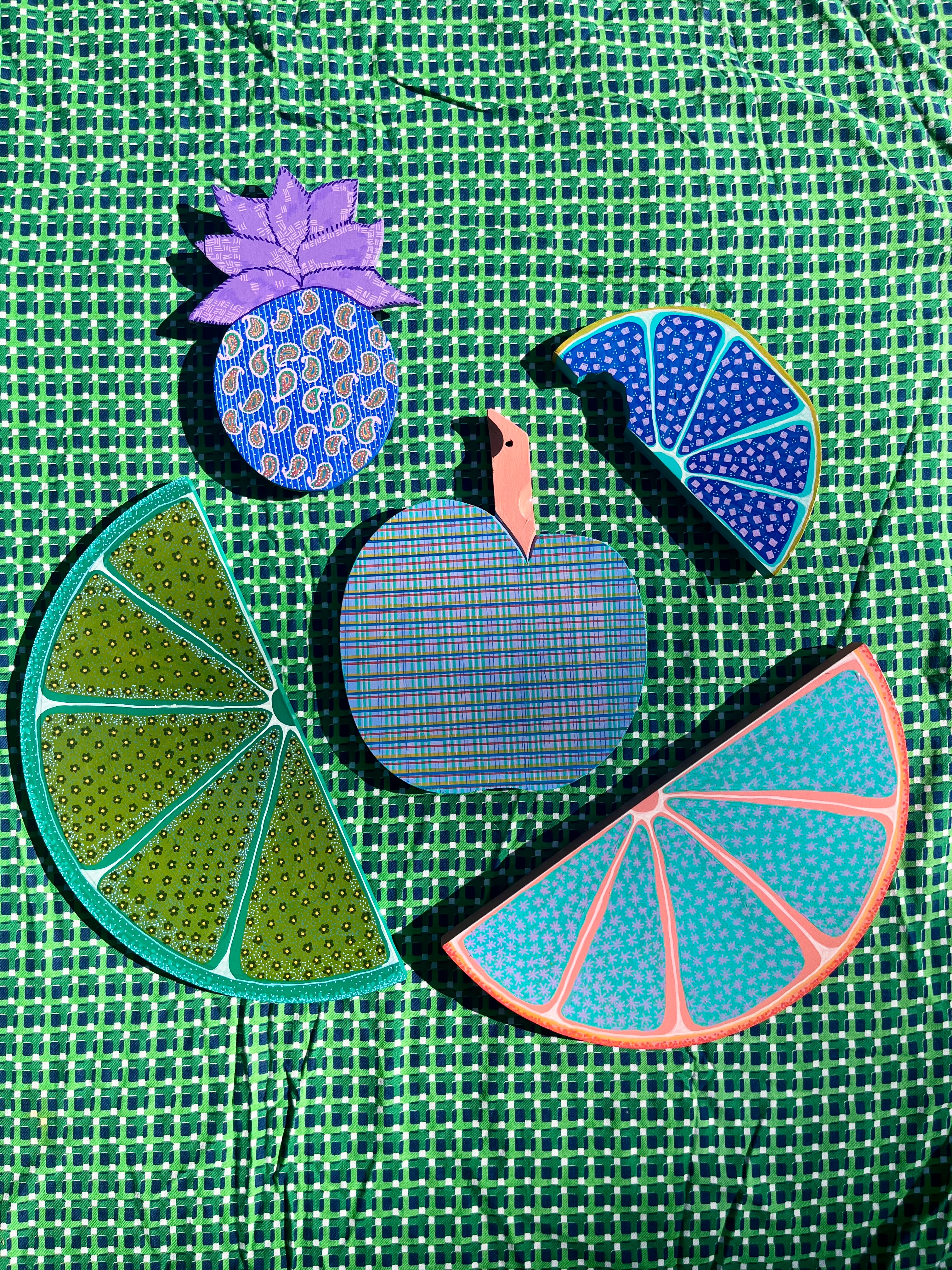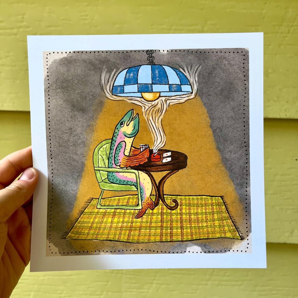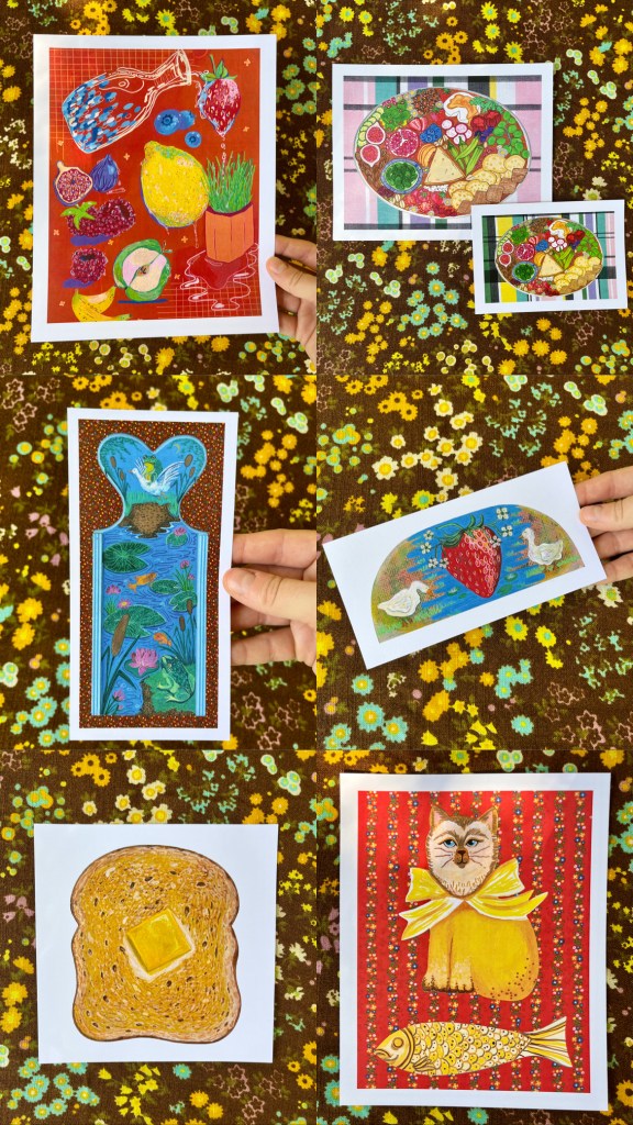 I paint all my originals on wood I score from flea markets and thrift shops around Arkansas and nearby states. I’m all about finding animal and food shapes to transform into my fun and colorful critters! If you’re into my wooden originals, hit me up via email or slide into my DMs on Instagram you can see what’s available for purchase there or commission a custom piece! 🔗https://www.instagram.com/brendullflyart/?hl=en